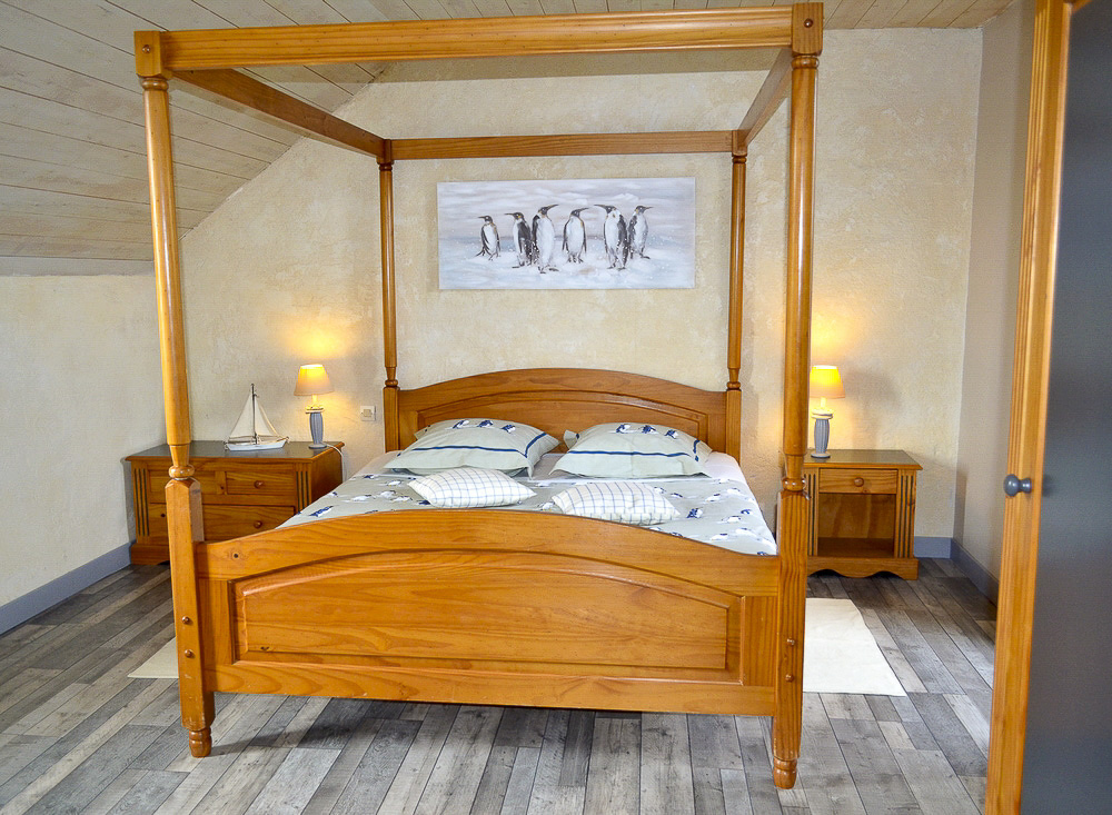 La chambre bateau, décorée sur le thème polaire invite au voyage, privilégie la chaleur des matériaux naturels et une atmosphère conviviale. Elle dispose d’une salle de bains privative et d’une chambre annexe avec une 2ème salle d’eau pour les enfants.