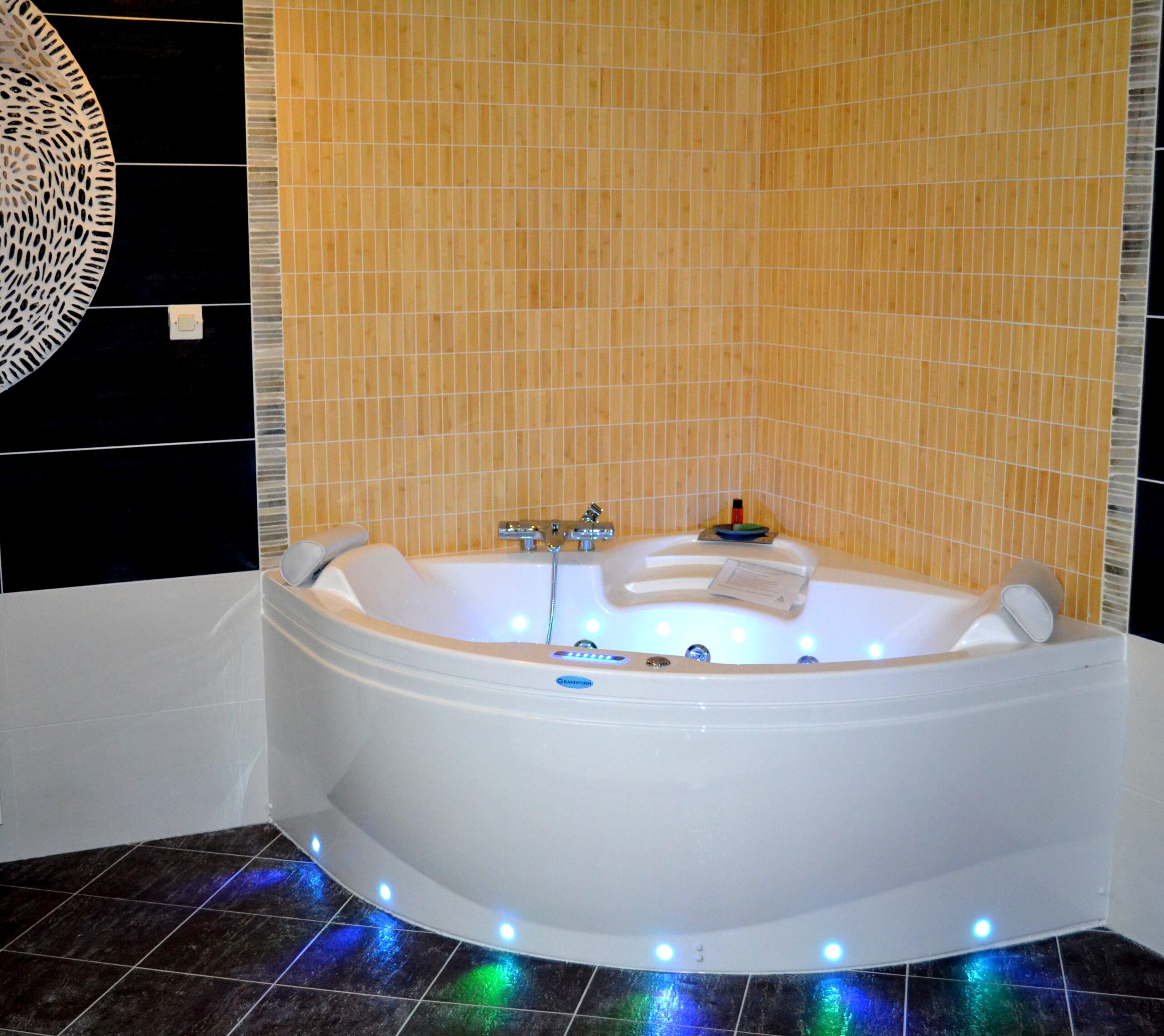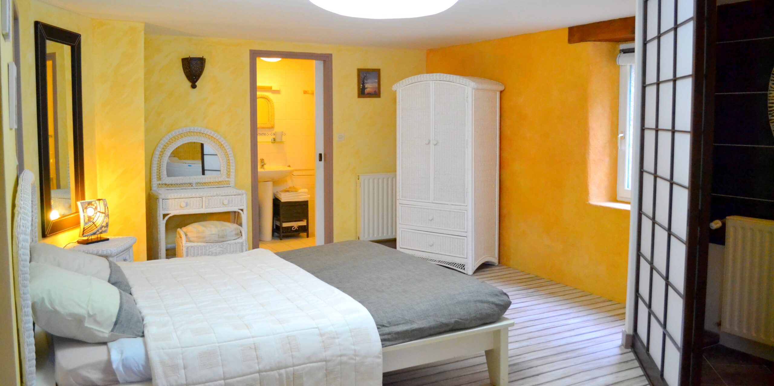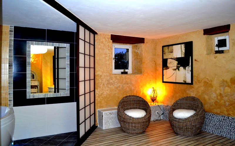 La chambre « Bonsaï » au rez de chaussée disposant d’une baignoire balnéo offre une ambiance très zen aux allures nippones, propice au repos et à la méditation.